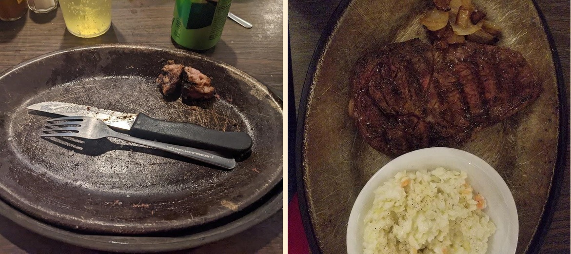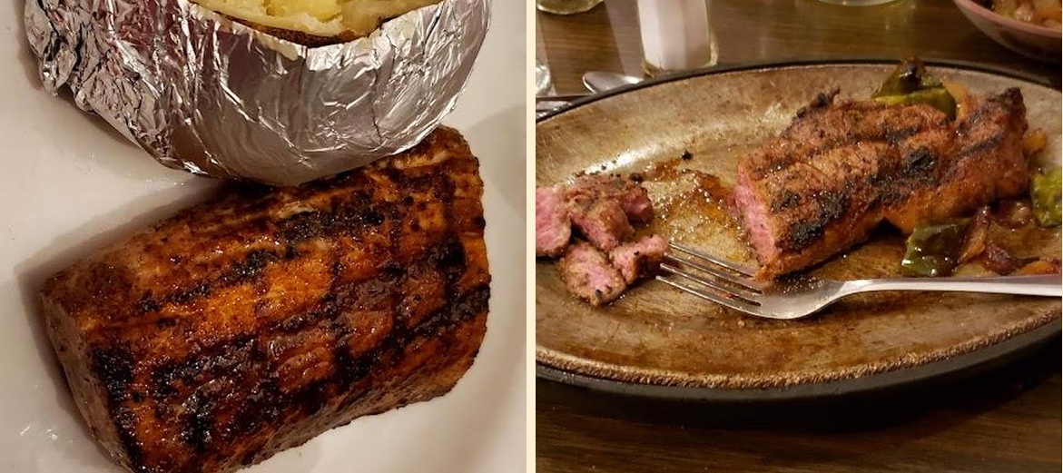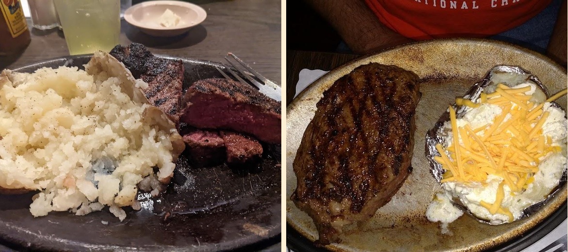 Guests love the grilled rib-eye steak, often claiming it as the best they've tasted. The baked potatoes served alongside are huge and generously topped. The salad bar is another favorite, offering a range of fresh ingredients. Friendly service adds to the overall experience, making each visit enjoyable. The casual ambiance allows for relaxation. Many appreciate the option of takeout and delivery for convenience.